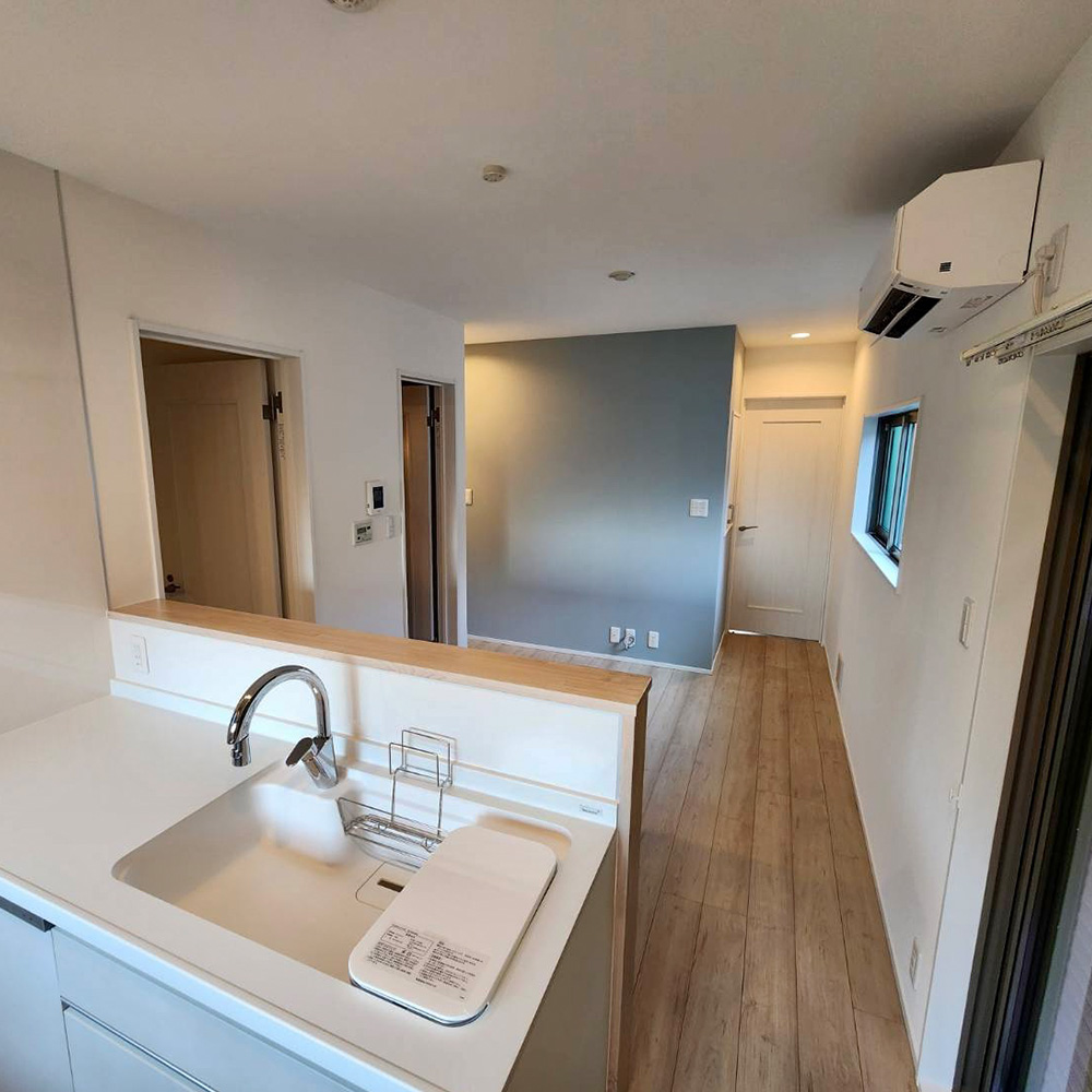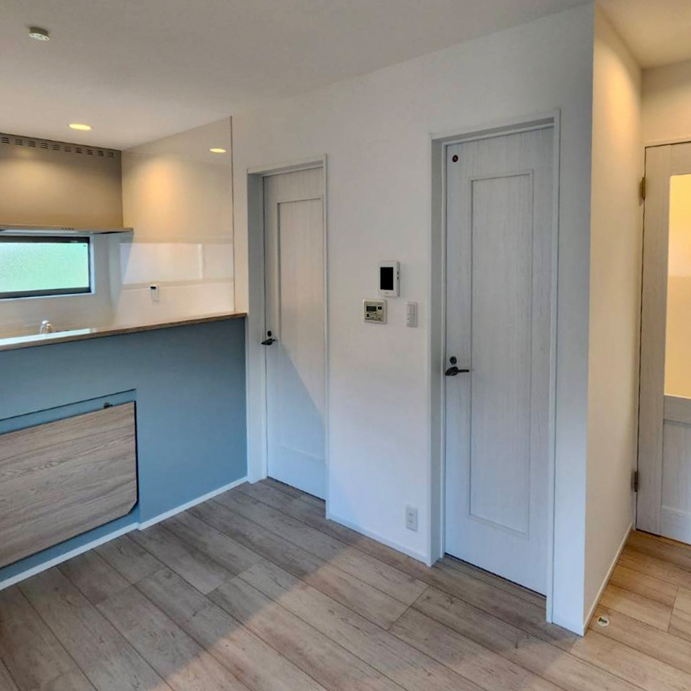 壁紙は白を基調とし、ドアも同系色で統一することで、全体に一体感と清潔感を演出しました。