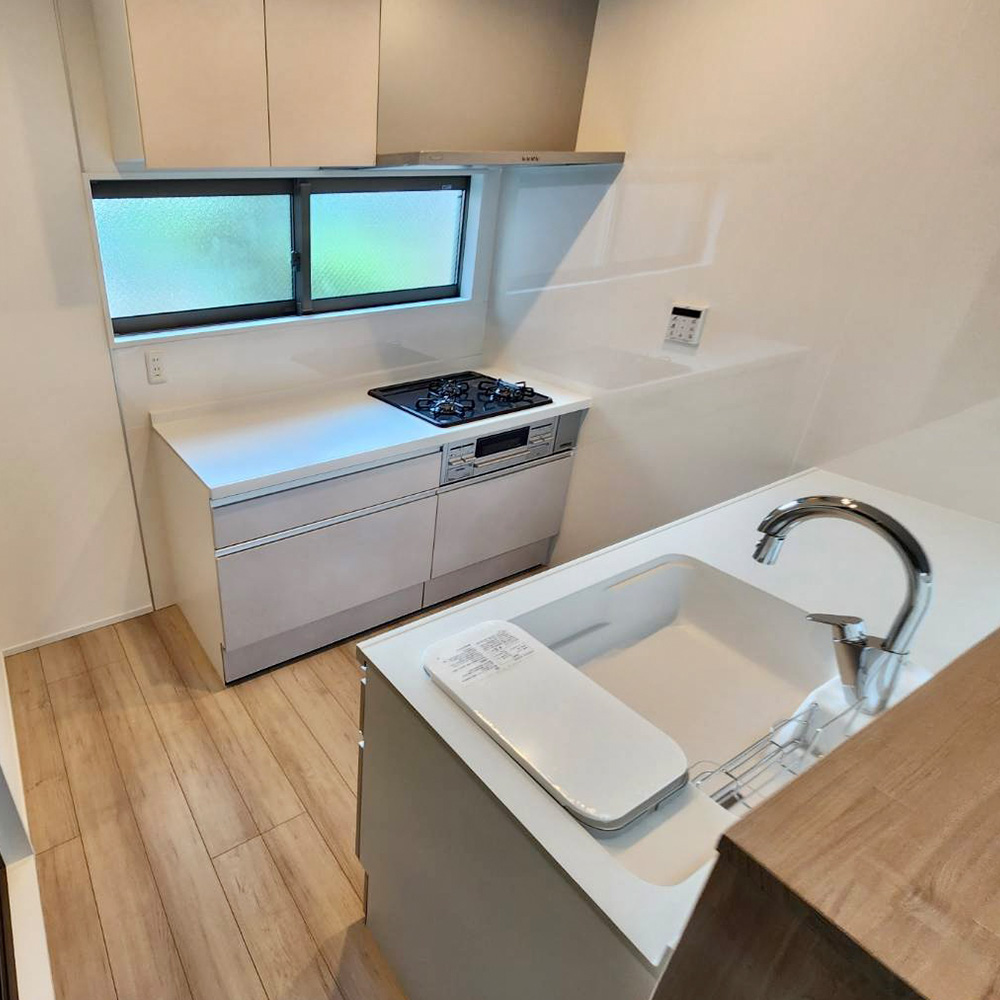 また、コンロの前に設けた窓からは自然光が差し込み、明るく開放的な空間を演出。圧迫感を感じさせない、心地よいキッチンに仕上がりました。